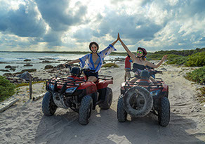 This amazing experience takes you to the unexplored east side of the island. away from hotels and industries, this tour takes you back to the “old cozumel”, years before it became the jewel of the Caribbean for the cruise ships. the inaccessible beaches to other vehicles , will give you the best views of the caribbean sea and its turquoise waters. jump in our honda trx atvs and enjoy one of a kind activity on this beautiful island. a must do activity while you are in cozumel.
