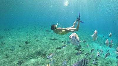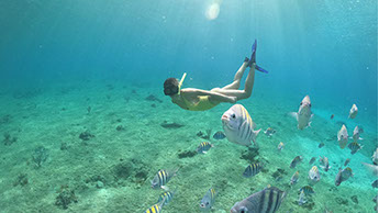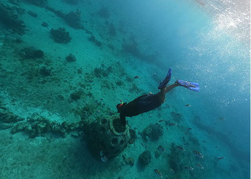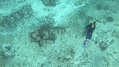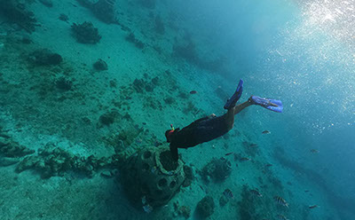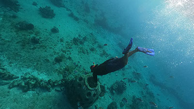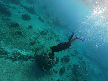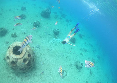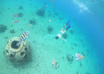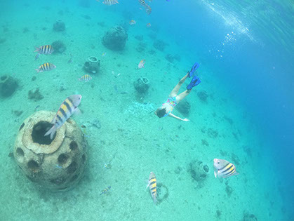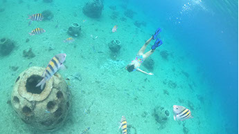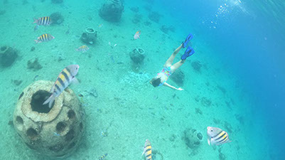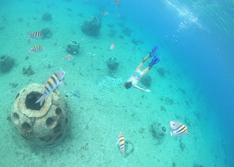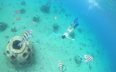 We also snorkel on the south side where there is an area of corals and artificial reefs