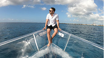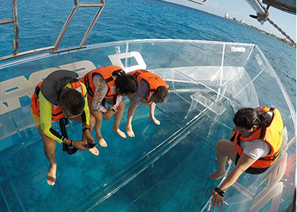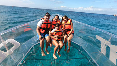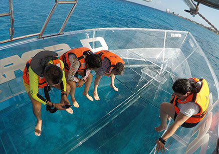 We take you through the most beautiful of the crystal clear waters of Cozumel in our incredible Clear Boat, where you will have the opportunity to enjoy Coral formations, marine life, sunken ships, the most emblematic places of the island, its history and if that were not enough you will have the fortune to snorkel in one of the best places in the world.