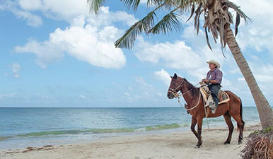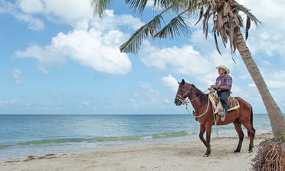 Vive el lado salvaje de Cozumel en un entretenido paseo a caballos, en el cual disfrutas de las verdes junglas y de las arenosas y cristalinas playas de la isla , apto para todas las edades y con grupos muy pequeños para una mejor experiencia de la mano de expertos equinos.