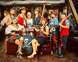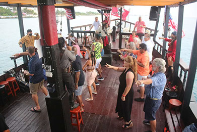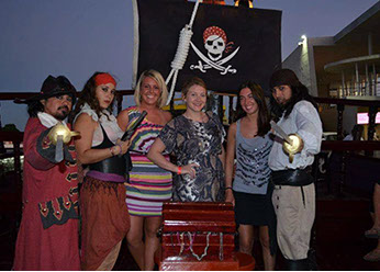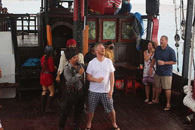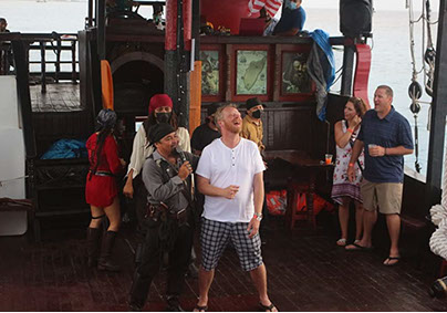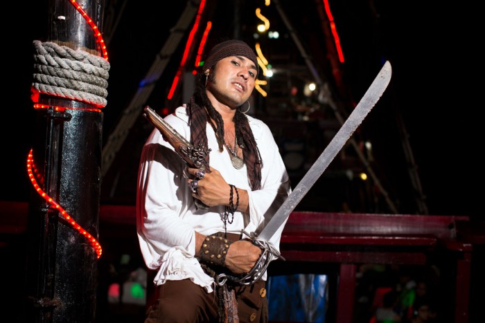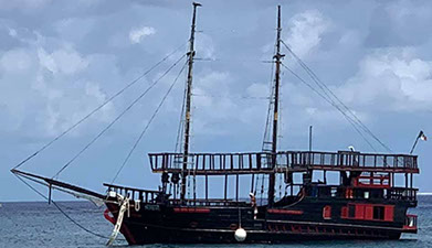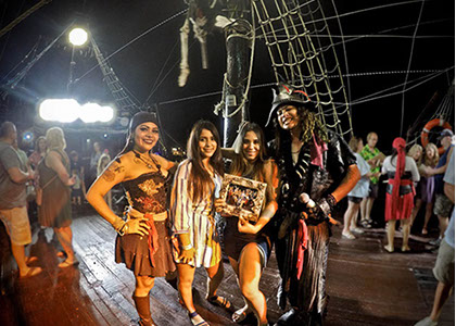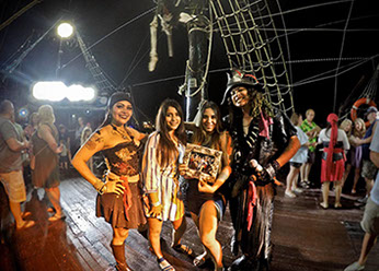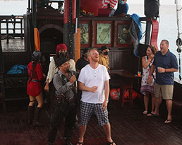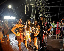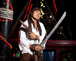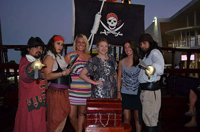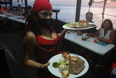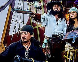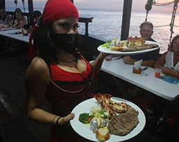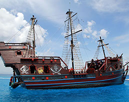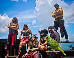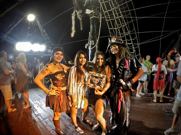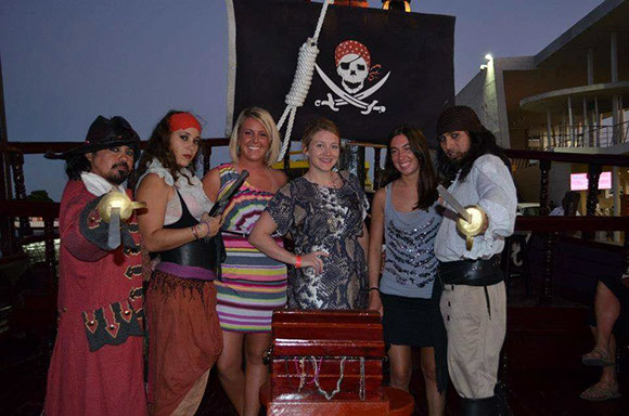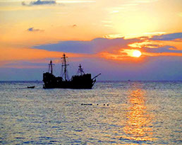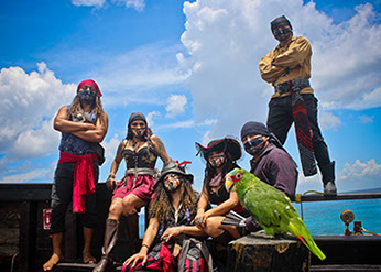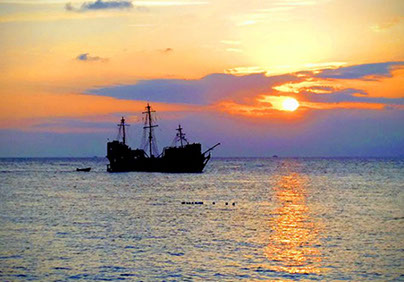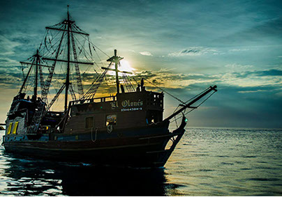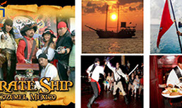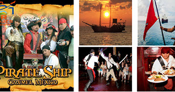 Simplemente disfrute de un inolvidable y divertido paseo por las hermosas aguas de Cozumel a bordo de una réplica de un antiguo barco español, en el que disfrutará de una deliciosa cena, barra libre y un espectacular espectáculo pirata (concursos de música), apto para todas las edades, mientras se sorprende con las hermosas puestas de sol del Mar Caribe.