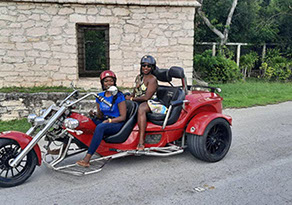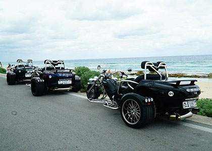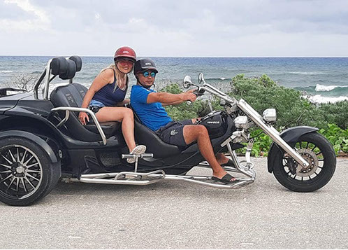 Espíritu indomable, quieres recorrer los mejores lugares de Cozumel en tu propio Trikes modificado, que cuenta con un poderoso motor, divertido y cómodo diseño para que vivas la experiencia de la ruta y lo mejor de todo, muy sencillo de manejar, ven y disfruta de un recorrido como ningún otro, a lo largo de más de 4 horas, disfrutando de una degustación de tequila y un delicioso almuerzo mexicano, es un recorrido espectacular que no te puedes perder.