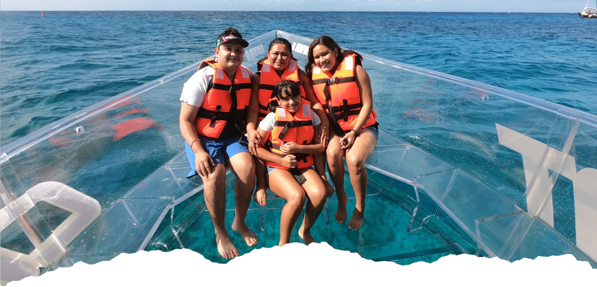We take you through the most beautiful of the crystal clear waters of Cozumel in our incredible Clear Boat, where you will have the opportunity to enjoy Coral formations, marine life, sunken ships, the most emblematic places of the island, its history and if that were not enough you will have the fortune to snorkel in one of the best places in the world.