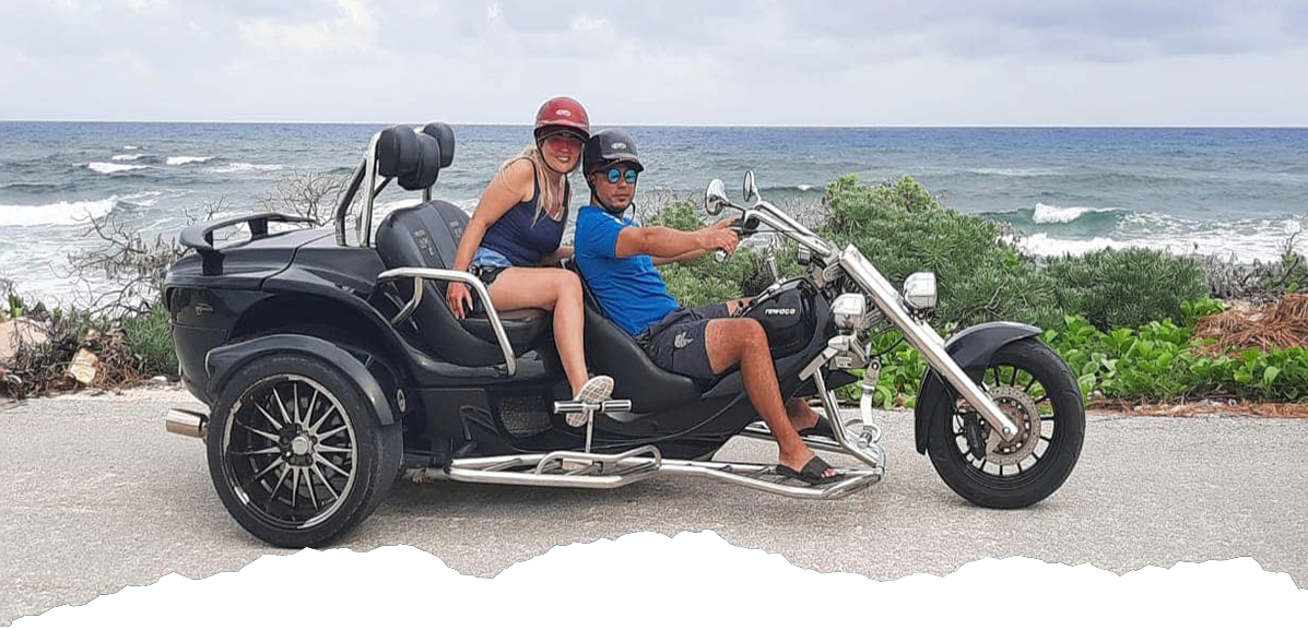 Indomitable spirit, you want to visit the best places in Cozumel in your own modified Trikes, which has a powerful engine, fun and comfortable design so that you live the experience of the route and best of all, very simple to handle, come and enjoy a tour like no other over 4 hours, enjoying a tequila tasting and a delicious Mexican lunch ,It’s a spectacular drive you wouldn’t want to miss!