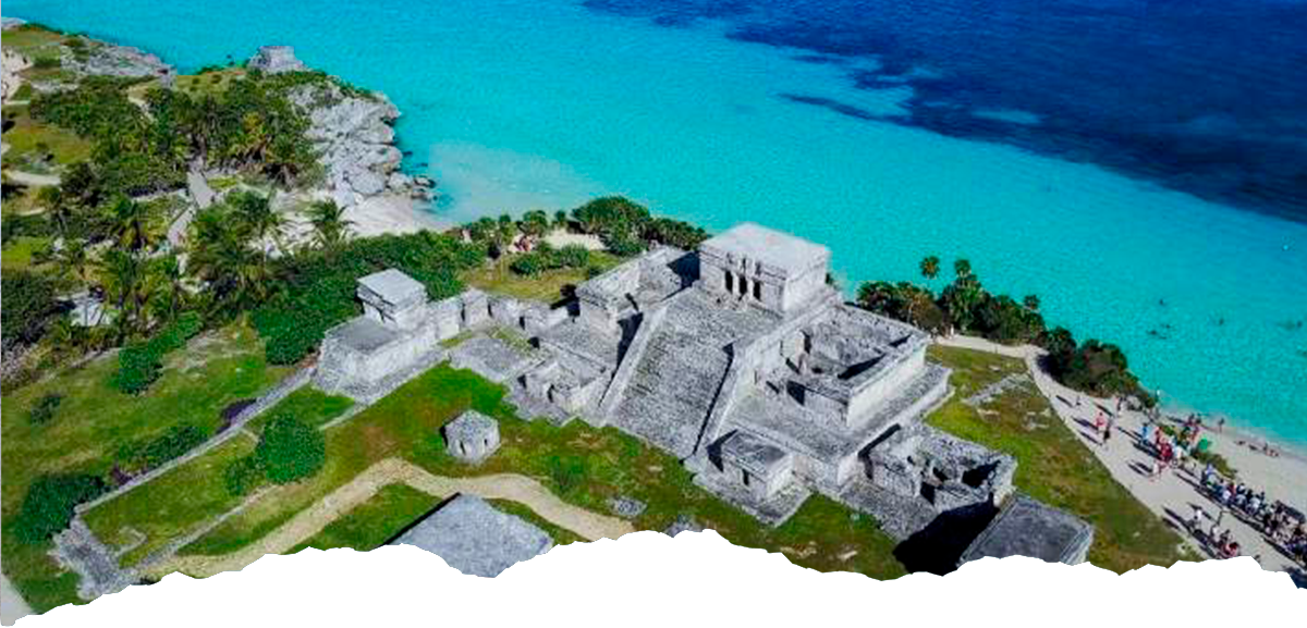 The Magical Town of Tulum is an obligatory point and the best example of Mayan charm thanks to its ruins located on the edge of the Caribbean Sea; in addition to being the only archaeological zone that sits on the edge of a cliff, under which is the beach of Paradise, one of the best and most beautiful beaches of the Riviera Maya