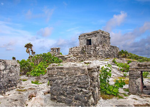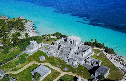 The Magical Town of Tulum is an obligatory point and the best example of Mayan charm thanks to its ruins located on the edge of the Caribbean Sea; in addition to being the only archaeological zone that sits on the edge of a cliff, under which is the beach of Paradise, one of the best and most beautiful beaches of the Riviera Maya and most likely, the most portrayed. Tulum, which means "wall" in Mayan, was originally given the name Zamá, which means "dawn." It was an important Mayan port between the thirteenth and sixteenth centuries. Tulum is located on a cliff facing east towards the Caribbean Sea